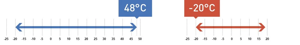 PACi NX elite-serien kan fungera även under de mest krävande miljöförhållanden. Kylfunktion fungerar även vid utomhustemperaturer ner till -20 °C (1) eller upp till 48 °C (2). Värmefunktion fungerar vid utomhustemperaturer ner till -20 °C.