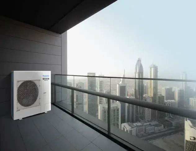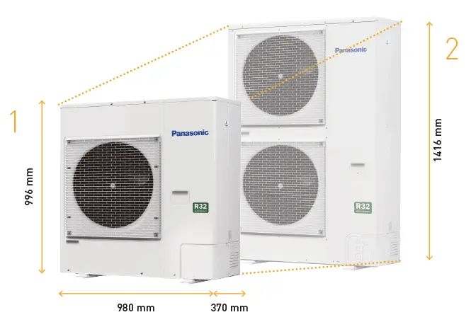 Utomhusenheten är mycket mer kompakt än den tidigare modellen. Den smala och lätta designen gör att PACi-utomhusenheten kan installeras i en mängd olika situationer. På 12,5 kW (996 x 940 x 340 mm).