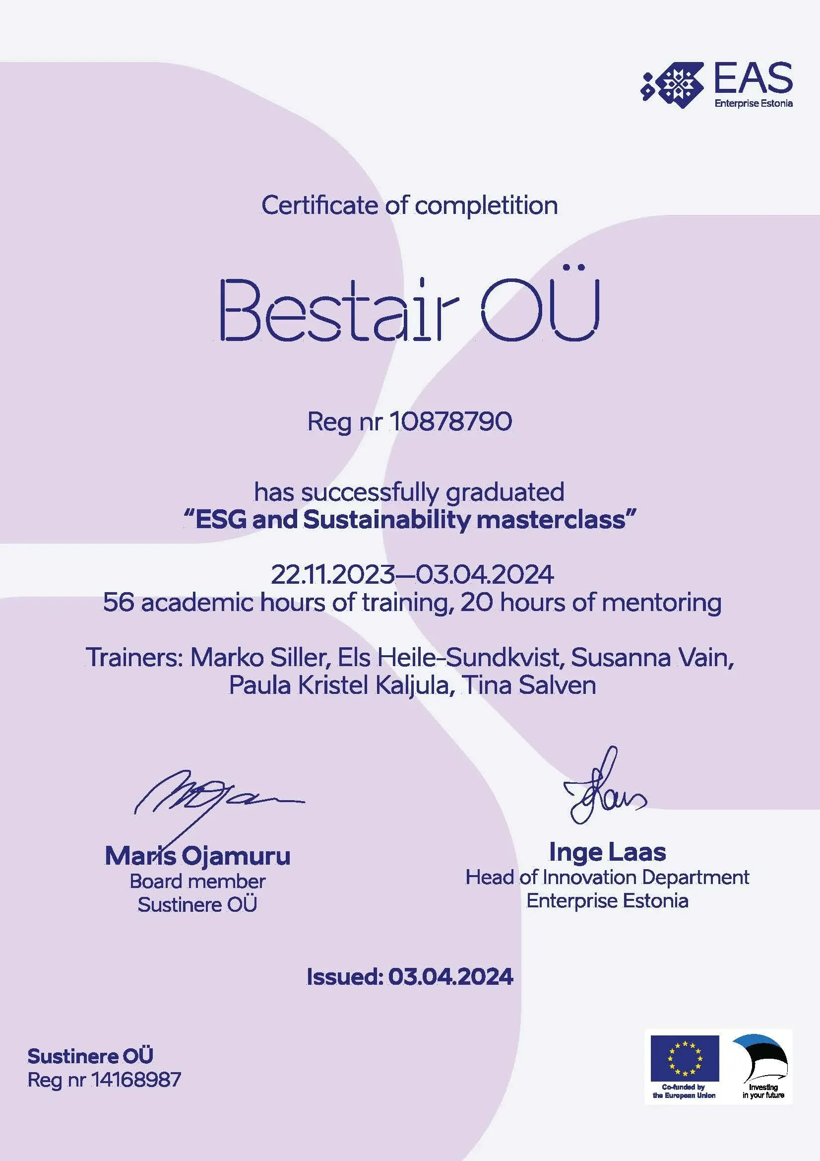 Vår företags ESG- och hållbarhetsvision och ambition är i linje med Bestair Groups nyligen förnyade mission och vision. Det uttrycker tydligt vår ambition att vara en ledande kraft inom miljöansvar och social hållbarhet i vår bransch.
