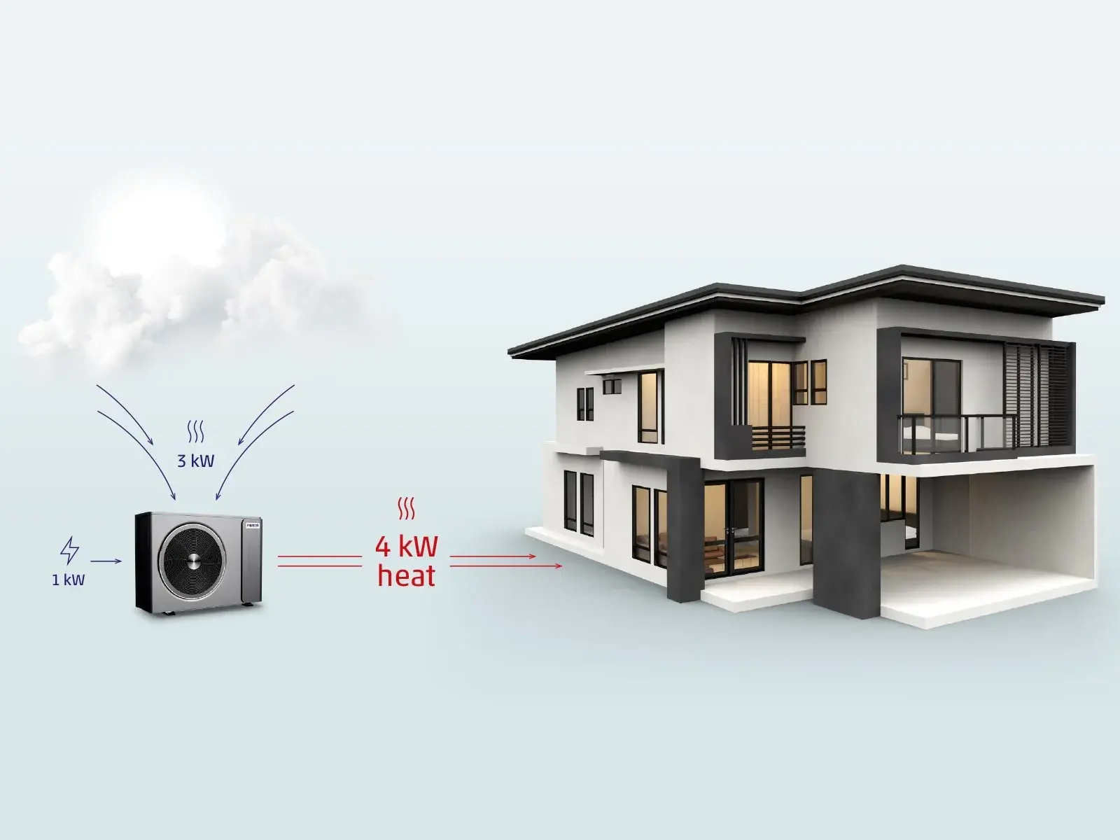 Pioneer luft-vattenvärmepump kan leverera upp till fyra gånger mer termisk energi än den elektricitet som används genom att effektivt samla in omgivningsvärme och överföra den direkt till ditt hem.